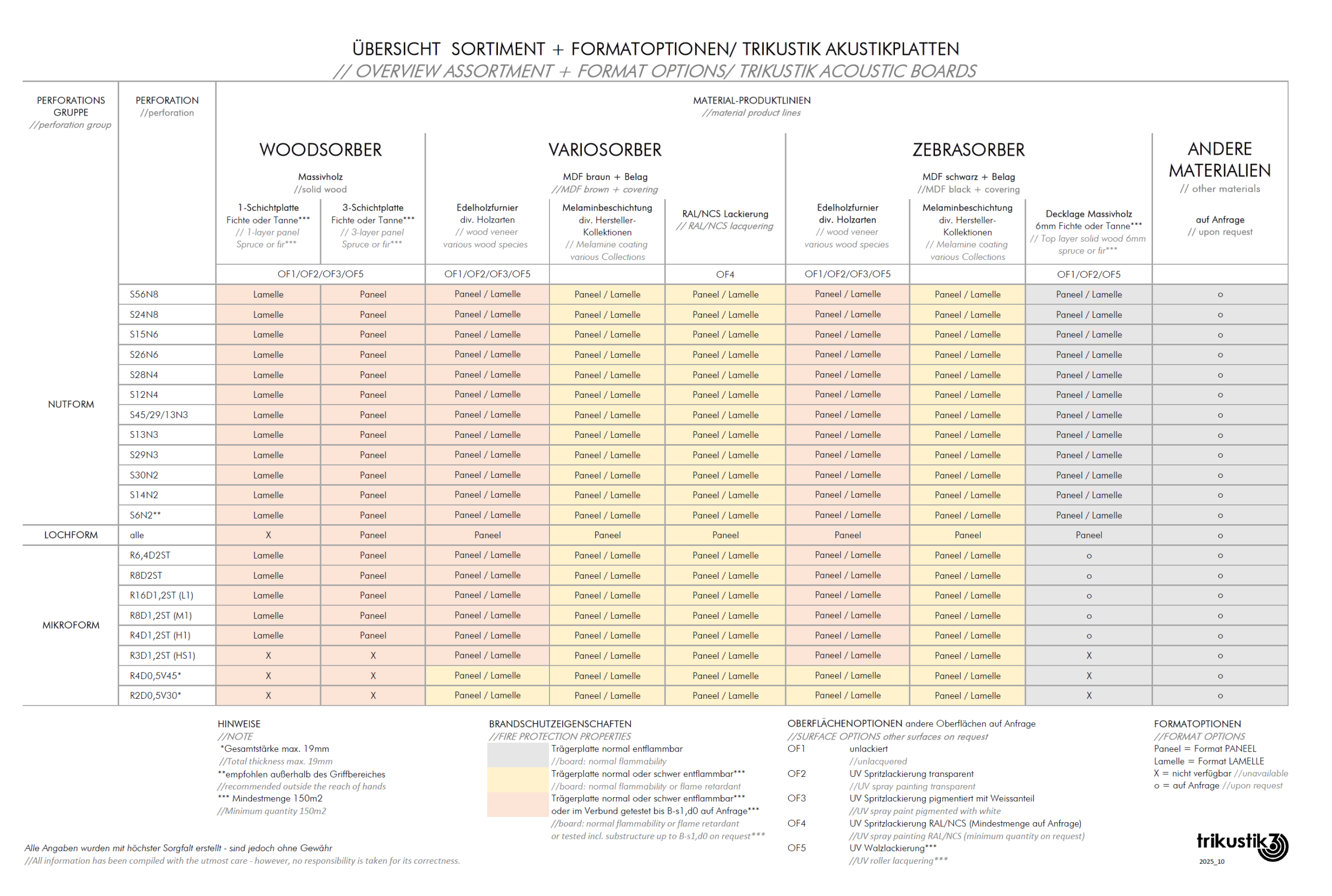 SORTIMENTSÜBERSICHT und FORMATE für Planung und Ausführung